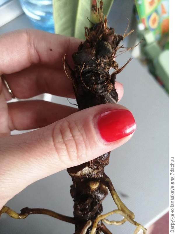 Вика, добрый день! Этот, судя по всему, был залит и стоял на холодном окне. В смысле поддон достаточно глубокий и в нем скапливалось достаточно много влаги, а потом само растение ещё и застудили. И подоконник наверняка холодный и форточку открывали наверняка надолго. Поэтому, корешки подстригаем до живых тканей, замачиваем немного в Максиме, потом в корневине или гетероауксине, подсушиваем немного и в новый субстрат по самые уши (по основание листочков). субстрат влажный, но не сильно переувлажняем. И поливаем только по необходимости, без особого усердия и фанатизма. Горшок желательно более глубокий. чем широкий. Зпаса влаги в горшке и субстрате обычно вполне хватает зимой на 4-5 дней, летом на 2-3 дня, если растение не стоит на солнце