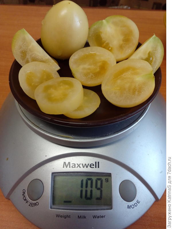 Плоды коктейльного типа, массой 50-70 г — тип, да, коктейльный, но вес у меня в среднем 30-40 г.