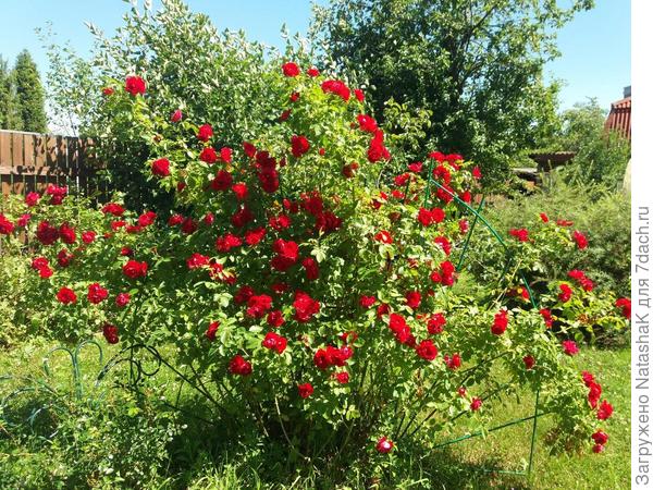 Здравствуйте, садоводы! У меня цветет куст розы Флорибунда. Цветет хорошо, диаметр цветка 7-8 см, цветы как одиночные, так и собраны в розетки. Пока бутон не раскрыт полностью, цветок смотрит вверх, когда раскрывается — опускается вниз, т.к. очень...