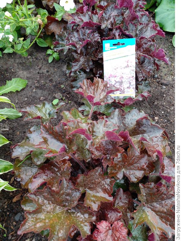 По весне в питомнике приобрела ещё растения — гейхеры Марвелос Марбл, Палас Пурпл (фото выше), Шоколд Вейл и тиареллу Весенняя симфония.