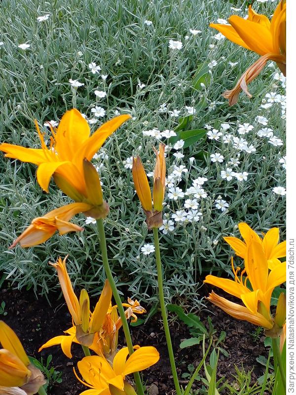 Она удачно стала играть свою второстепенную роль, дополняя цветущие на клумбе или размещённые рядом в кашпо цветы. Мне вполне хватало декоративности листвы ясколки.