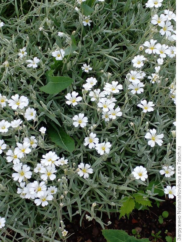 Весной ясколка войлочная 'Хрустальный водопад' зацвела! Над подушкой из серо-сизых листьев поднялись на тонких цветоносах нежные маленькие цветочки белого цвета с жёлтой серединкой.
