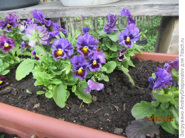 Удачно перезимовав, виола-второгодка сорта 'Бархатный вельвет' уже вовсю цветёт в моих клумбах!