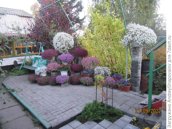 На фото — после того как отцвели петунии на их место поставил алиссум который цвел до самого снега… мобильный " цветник " в разы лучше " стационарного ".