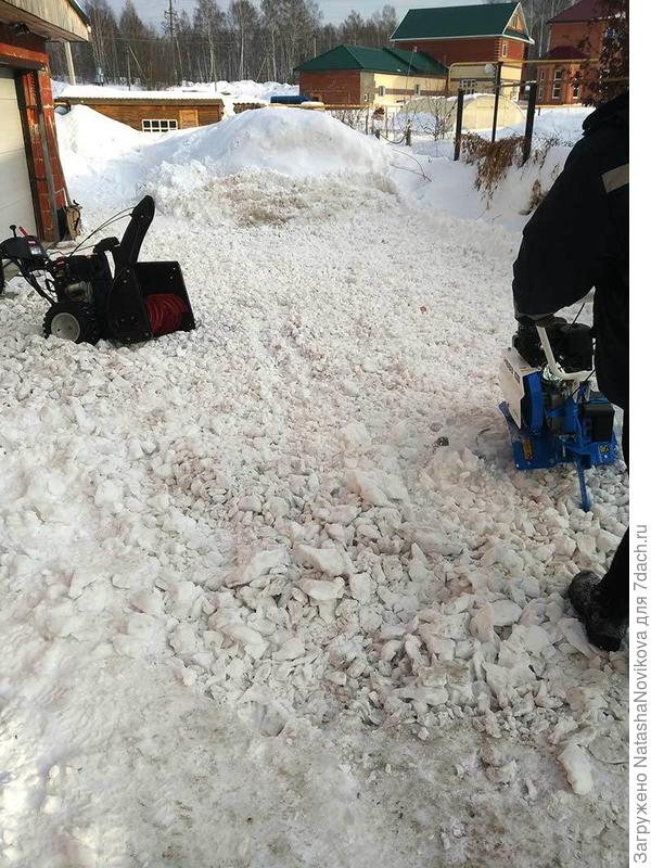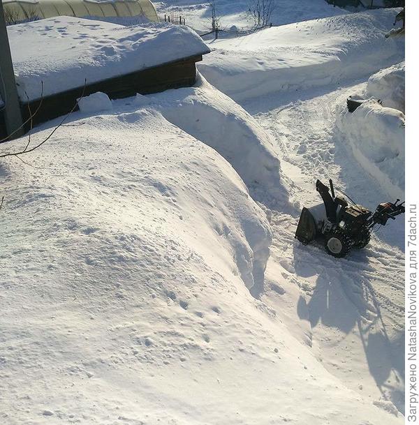 С чисткой — отец как-то купил снегоочиститель, эдакая тарахтелка с вращающимися роторами, плюющая струёй сгребаемого снега в сторону (как у коммунальщиков в городе, только чуть поменьше), но она не сильно прижилась — отцу самому чисткой заниматься тяжело, он пенсионер, а мне тратить бензин жалко, так и кончилось тем, что я впёр её на чердак гаража, где сухо и чисто, а снег чищу по старинке лопатой, но чищу лениво и только там где хожу, метр в сторону — уже не чищу. Общую дорогу в поселке у нас чистит трактор, когда-то ряд дачников скинулся и купили эту штуку, потом к ней был взят на работу один толковый и ответственный человек, ну и он рассекает по поселку по дорогам, а ему «донатят» кто попало. Я, правда, не плачу ни шиша, но не столько от жадности сколько от бедности, я ж безработный, откуда у меня деньги-то особо… Ну вот, а заезды обычно чищу лопатой. Одно время чистили приезжие гасты, за жильё в бытовке, но их уж года два как нет, поэтому лопачу в основном я, изредка отец.