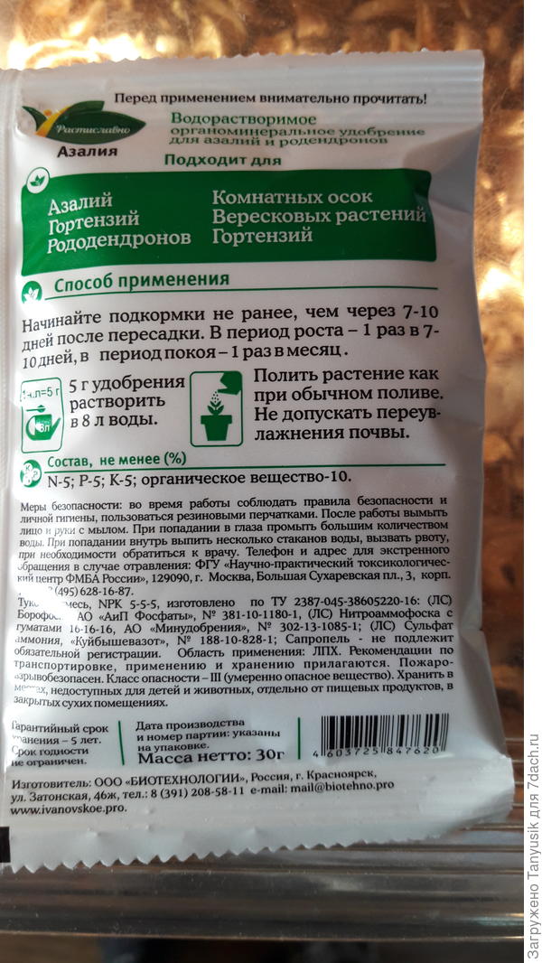 Вот это удобрение, наверняка, можно для моих новичков рододендронов и азалии использовать… Вопрос о сроках внесения удобрений после пересадки из горшка в ОГ ????