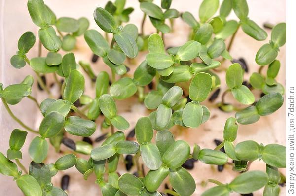 Стараюсь раскладывать семена тонким слоем в один ряд или в один слой, достаточно плотно друг к другу, чтобы они в процессе роста были достаточно близко друг к другу и больше вытягивались, поддерживая соседей. Если ростки достаточно сильно вытянутся, то с ними проще работать, обрезать и получается чуть больше товарной витаминной массы.