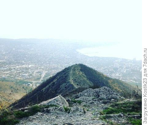 Вид на Новороссийск…Туда, потому что мы решили выходные провести, погуляв по руслу реки Тхаб, к Плесецким водопадам в одноимённой Плесецкой щели, которая берёт своё начало в селе Михайловский Перевал, что в 25-ти километрах от Геленджика.