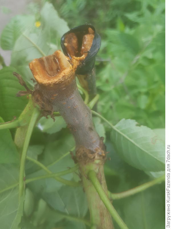 Подозреваю, что отлом произошел под тяжестью мокрых листьев при ветре, но главная причина — непрочное срастание вследствие небольшой площади соприкосновения, потому как прививал прививочным секатором. Это, кстати, один из его серьезных минусов. Переживаю, чтобы и другие прививки, где тоже активно прет, не отломились. Может закрепить их? Или если им сломаться- то все равно отломаются — не в этом году, так в следующем?