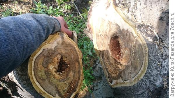 Срез скелетной ветви у корневой шейки почти затянулся, хотя и начал уже подгнивать