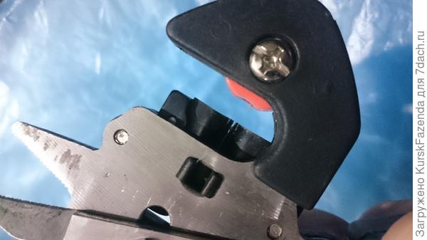 - Фиксирующая пластиковая штуковина, закрывающая и раскрывающая секатор, свободно «ходит» туда — сюда и легко отламывается при выполнении среза (у меня отломалась спустя года три где-то эксплуатации).