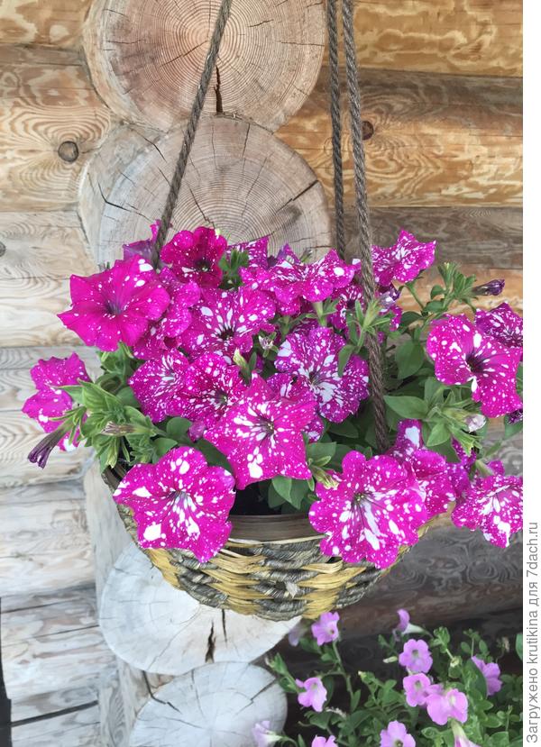 Дополнительно к своим собранным еще купила семена, которые появились в продаже – 'Дот Стар Пинк' и 'Дот Стар Вайолет'. Обе петунии получились! Они обе с цветками 6-7 см, и кустики 25 см высотой хорошего плотного габитуса. 'Вайолет' очень хороша, а у 'Пинк' не понравилось, что серединка не белая, а желто-бежевая, смотрится не очень чистой. Ну, это на вкус и цвет – все фломастеры разные!