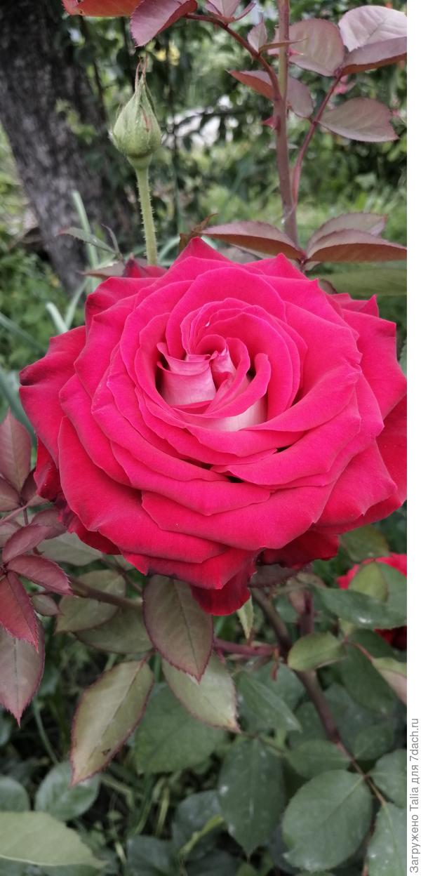 Отечественный сорт чайно-гибридной розы ‘Крымский Рубин’.