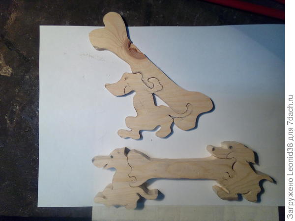 В ход пошла дюймовая доска, отшлифованная с двух сторон. Так как не обладаю даром рисования, то выход нашел, скопировав рисунок через простую копирку на дерево. Контуры картинок закачал из интернета. Поделки делал для внучат, двоим скоро по 2 годика, в самый раз для развития.