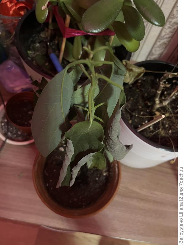 Добрый день. Не так давно пересадила авокадо из одного горшка в другой. До этого было большое и красивое. Сейчас высохло полностью. Плюс появились пятнышки на самом стволе.