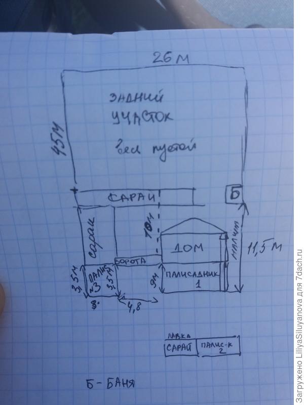 От заднего крыльца до задней стенки сарая 11 м 50 см.