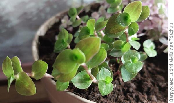Можно размножать отводками. Просто прикопать кусочек плети, и через некоторое время на ней появятся корни. И если куст каллизии пышный, не лысый у основания, его можно разделить на несколько частей и высадить в разные горшки.