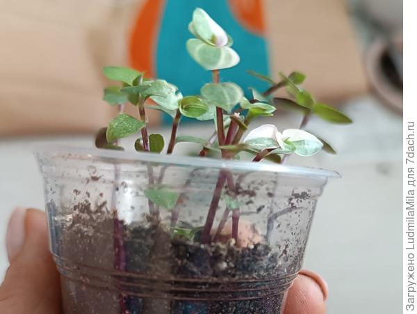 Первый способ — черенкование. Срезаем верхушечные плети с 3-4 междоузлиями и помещаем в стакан с водой. Корни отрастают практически мгновенно. Высаживаем сразу несколько черенков. А я, например, высадила в один горшок каллизию разных видов.