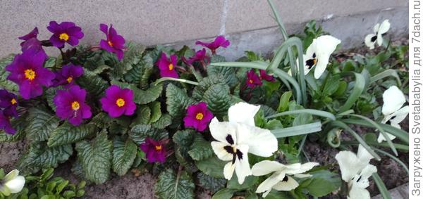 В прошлом году я писала о примуле обконика — Примула обконика, или Первоцвет обратноконический. Осенью она переехала к дочери (выпросила))), прекрасно чувствовала себя всю зиму, но зацвела в начале марта, и сейчас уже цветение прекратилось. Думаю, что в квартире было просто жарко. Куст разросся, и теперь его можно размножать вегетативно. Заберу к своей желтенькой.)) Высажу следующей весной вместе на даче (правда, не уверена, будет ли расти обконика на улице). А вместе будут смотреться просто великолепно.