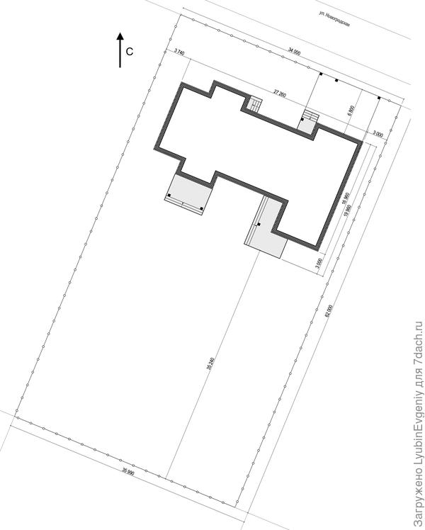 Эскиз планировки прямоугольного участка на склоне