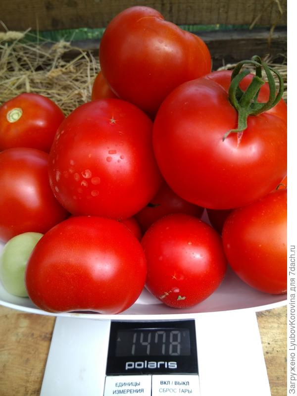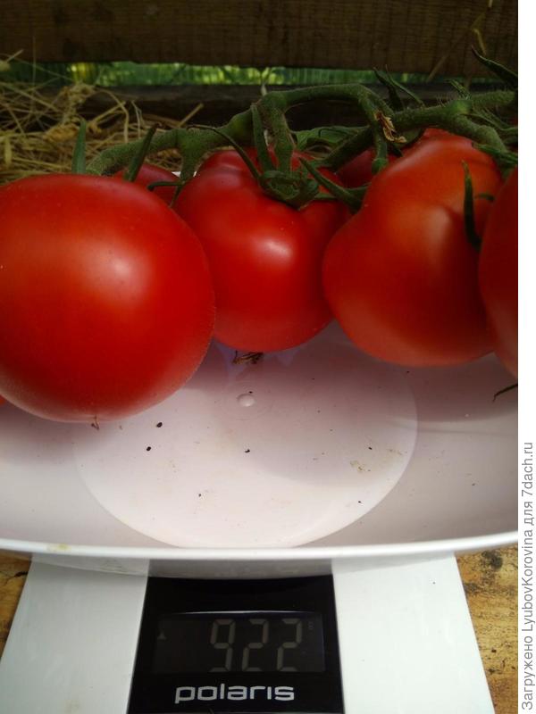Сама кисть с томатами весит 922 г, а общий вес составил с куста 1478 г.