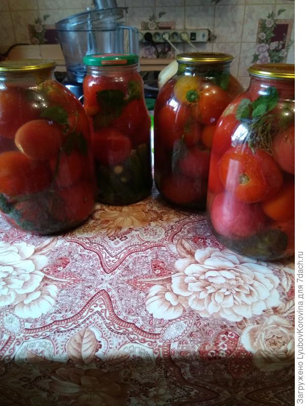 Да. Теперь я вижу ошибку свою, а заключается она в том, что первое — это неправильное формирование куста, рано завершковались томаты, и еще томатов 5 или 6 выбросила с вершинной гнилью. Ну это, конечно, не конец томатам, завязь еще есть, и завязываются новенькие. Надеюсь, они вырастут и поспеют. Один для себя сделала вывод, что сажать их буду снова, потому что они очень и очень вкусные, и для консервации отличные томаты. А смотрятся в закатке — просто красота.
