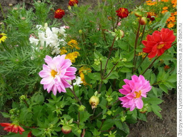 Как вы думаете, если весной к высоким георгинам посадить однолетники — петунии, они уживутся? Или им будет некомфортно с высоким соседом?