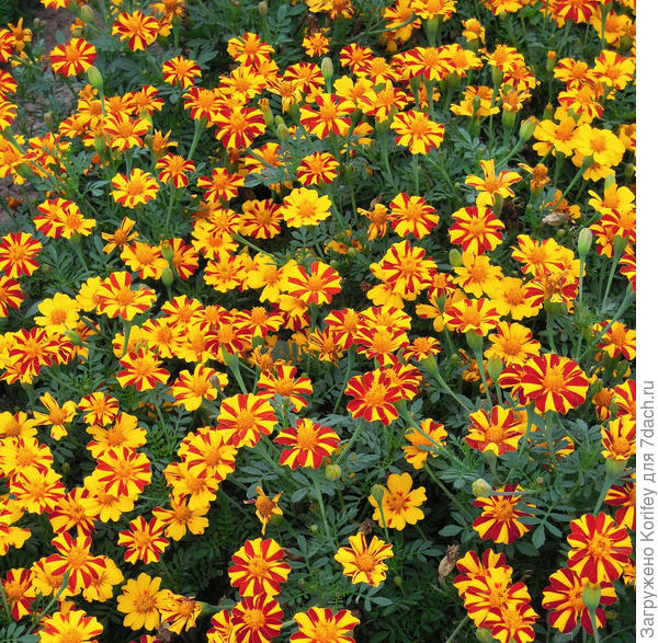 Иногда кажется, что если бы не морозы, то период их цветения был бы бесконечен, знай обрывай отцветшие цветки. Чтобы раньше началось цветение, я сею бархатцы в несколько сроков.С середины февраля начинаю посев семян, и уже в мае мои бархатцы радуют меня цветением на клумбе.