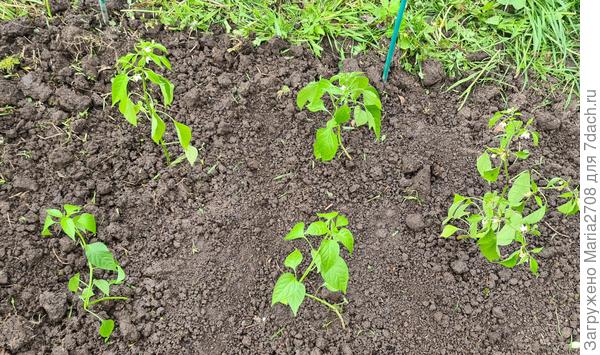 29 мая я наконец высадила перцы. Лунки сделала на расстояние примерно 30 см, в каждую я добавила горсть золы и перегной.