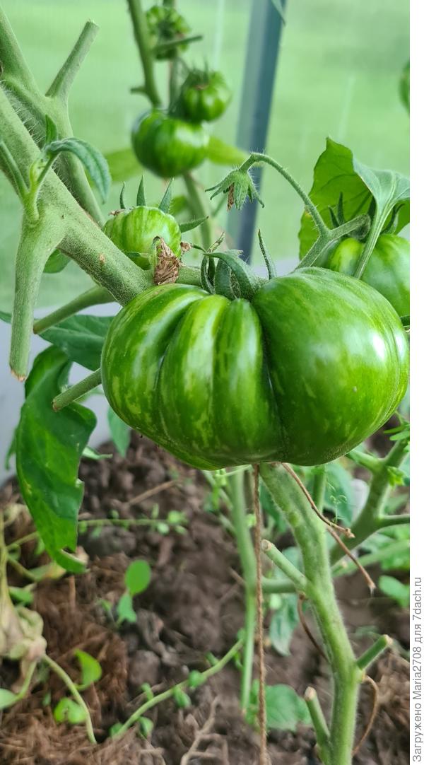 Осталось дождаться их созревания. Первый сбор томатов был 4 августа, я собрала 6 штук весом 419 г.