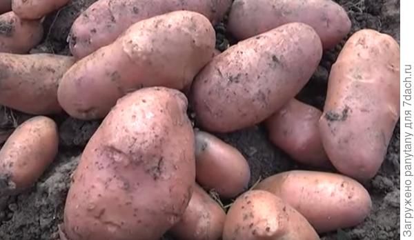Клубни удлиненной формы, светло-розовые, мякоть кремовая.