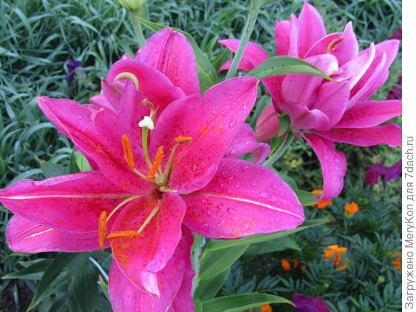 Зато какая красота откроется взору хозяев и гостей сада в разгар лета! Эти лилии обладают удивительным шармом, их очень крупные цветы (до 30 см в диаметре!), распускающиеся во второй половине лета, покоряют богатством красок и необычностью форм, а насыщенный аромат окутывает сад атмосферой таинственного Востока. Высота растений варьируется в зависимости от сорта и может достигать от 40 до 120-130 см; цветы великолепны как в саду, так и в парадных букетах.