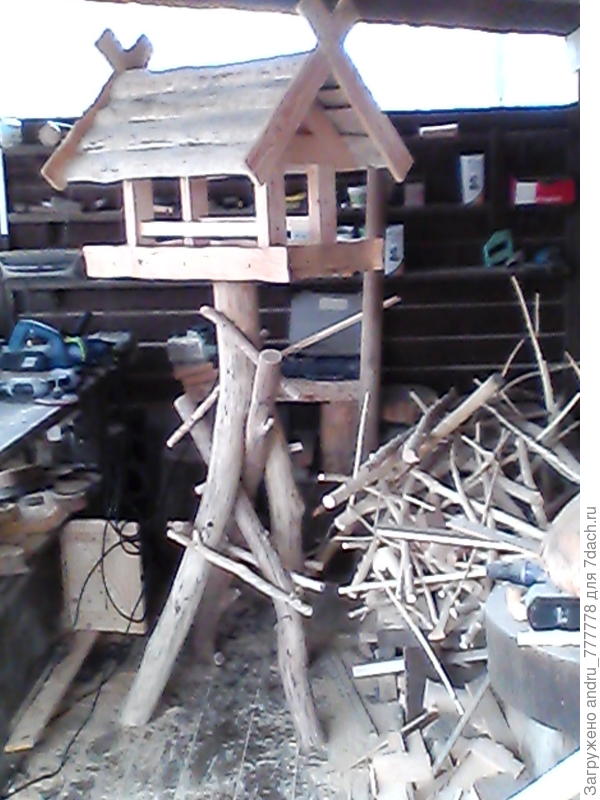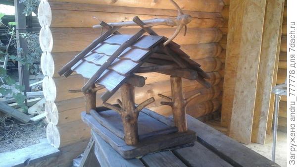 Подобные конструкции нередко можно встретить в магазинах, но для хорошего мастера, полагаю, не составит труда сделать такую кормушку своими руками, тем более, материал вполне доступный.