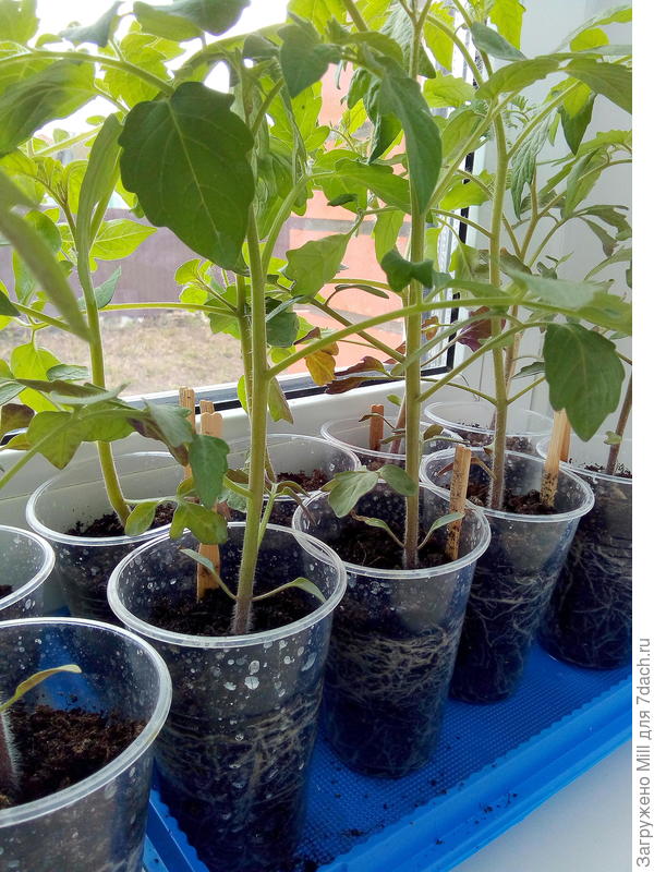 Развитие у всех 4 растений — на уровне самого слабого из посеянных в тот же день 'Черных красавцев'. Они как будто замерли — не растут и не чахнут. Так будет ли с такой рассады хоть какой-то прок? Сомневаюсь...