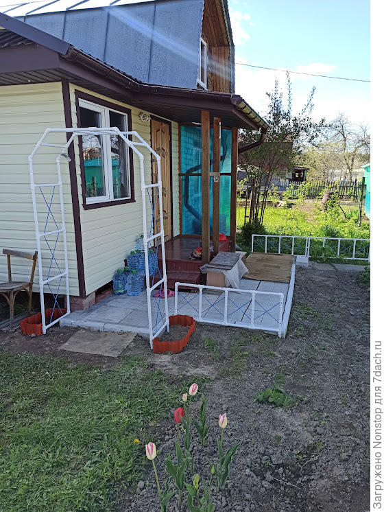 Отлично получаются из труб ПВХ разнообразные виды опор для садово-огородных культур: арки, шпалеры, ограждения для ягодных кустарников. Такой опыт есть и у одной из наших читательниц: Опора для вьющихся растений из труб ПВХ.