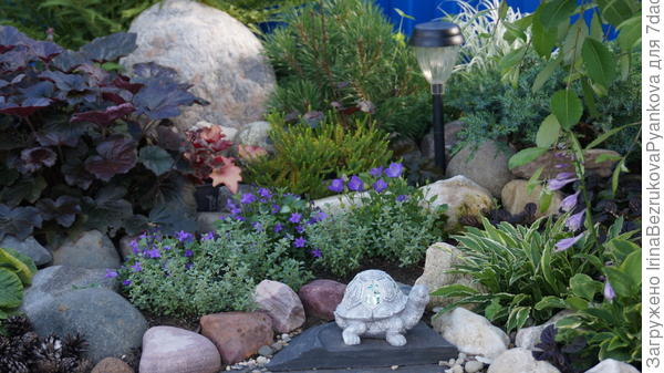 У меня от стройки остался бутовый камень и я с радостью пустила его в оформление участка. Тяжелые камни просила положить строителей, а камни поменьше тягала сама. Им ведь невозможно объяснить, как нужно уложить камень. Его нужно покрутить разными сторонами, и если не вручную, то хотя бы в голове