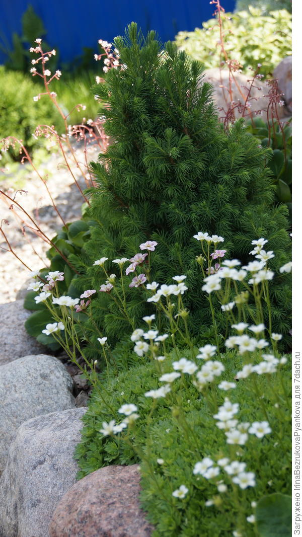 пока маленькую сосенку, высаженную на газоне, обложила камнями, чтоб случайно не скосить газонокосилкой