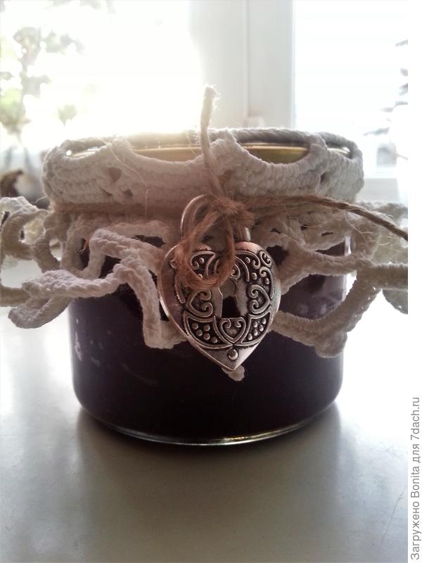 Я делаю вот такие дачные подарочки на основе своих урожаев (с соусами, вареньями, желе, засахаренными ягодами). Заранее вяжу салфеточки. Еще лучше, если собрать маленькую корзиночку.