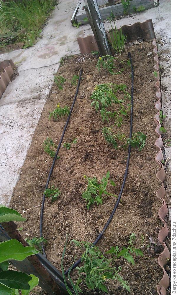 ![Бедные томаты, торчащие из голой земли, получающие 2 литра воды под корень раз в 2 дня... Фото 2017 года.]()