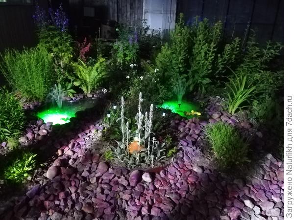 Бесконечный простор для фантазии оставляют всевозможные сочетания чистеца с другими декоративно-лиственными растениями. Вот, например, как он пристроился у меня между хостами и молочаем кипарисовым на берегу пруда