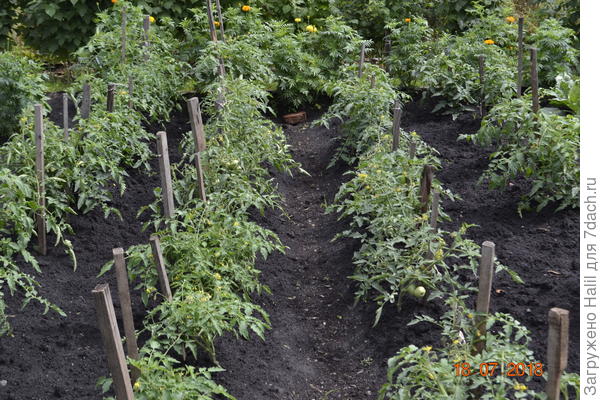 Почву на подготовленной грядке выравнивают и намечают рядки для посадки с расстоянием между ними 40-45 см. Между зубками в ряду достаточно будет оставить 8-10 см.