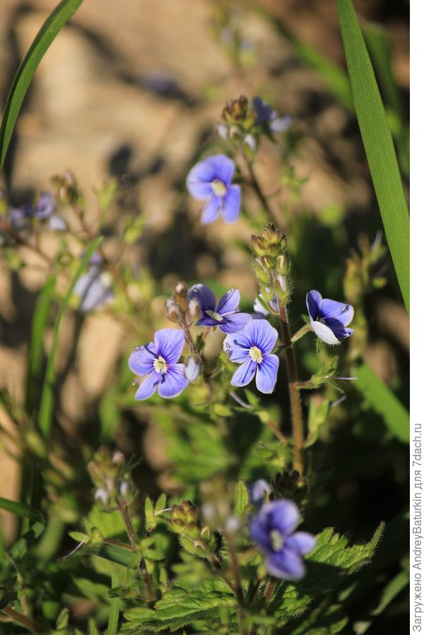 Другая почвопокровная красотка — вероника нитчатая — отличается своенравным характером. Как я ни пыталась ее приручить — не дается, где ни посажу — убегает, сама себе место выбирает, где расти.
