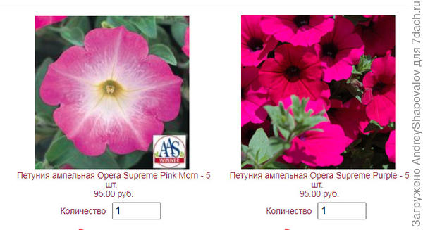 Петунии 'Джоконда Звездная Бургунди' F1 и 'Опера Суприм Распберри Айс' F1, фото с сайта seedspost.ru