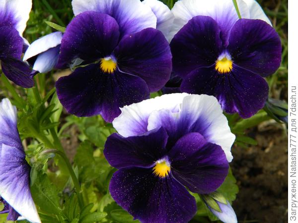 - виола 'Кан Кан cапфировая' F1 — темно-сиреневые цветки с пурпурно-черным центром и темными прожилками;