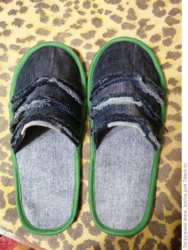 А в комплект к фартуку — удобные домашние тапочки или легкие шлепанцы. Из старых джинсов шьют что угодно — от детских пинеток до летних сапожек.