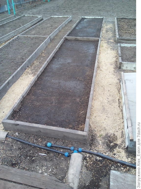 Грядки сделали, сейчас будут снимать дёрн вокруг и засыпать опилками и соломой
