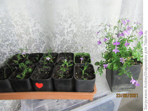 Еще убедилась, что лобелию Синий каскад нужно сеять позже. Она о-оо-очень разрастается. Разница с сортом Хрустальный дворец (посеяны в один день) видна уже, что называется, невооруженным глазом: если вторая сохраняет компактную форму куста, то первая заметно тянется, разваливается, и скоро это грозит перерасти в проблему…