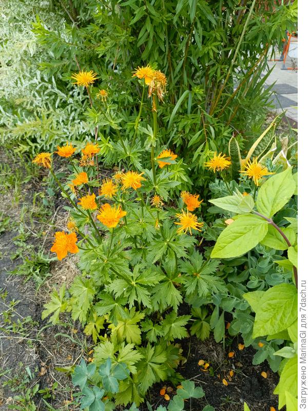 И вот теперь это в двух местах зацвело, но что ЭТО? Кустик и листья очень похожи на купальницу, а цветы решительно нет — маленькие и блеклые какие-то. Может, это вообще сорняк какой-то замаскировался?