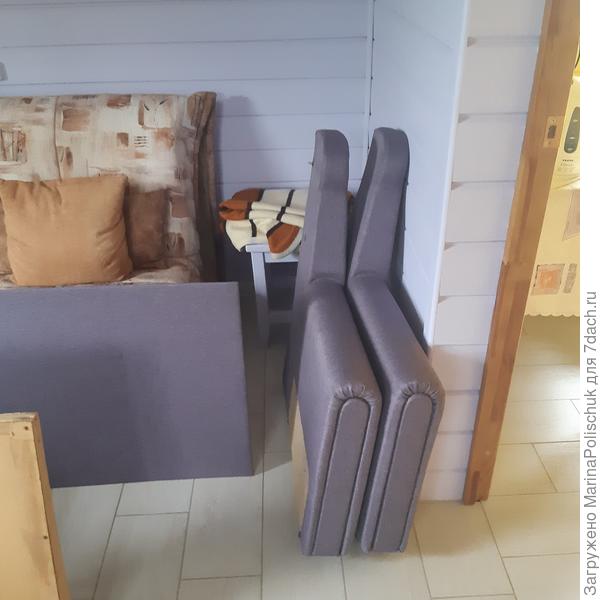 Сняла старый поролон со спинки и заменила стропы на сиденье.