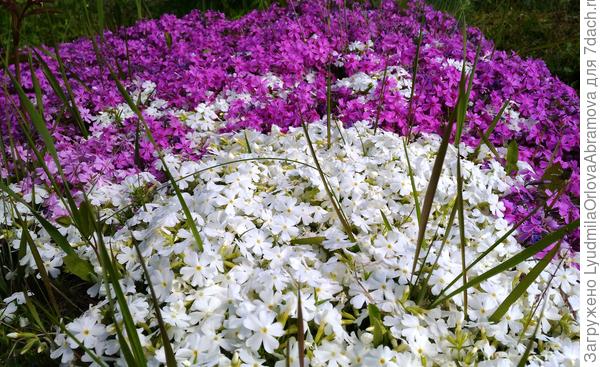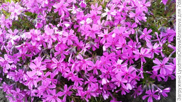 Этот не самосеется, но растет без проблем — вьюнок трехцветный. Он не вьется, а стелется. Белый сорт покупать не советую, он внешне ничем не отличается от сорного, красный — тускловат, как то видно на фото, а вот синий, самй распространенный — хорош, очень чистый оттенок.